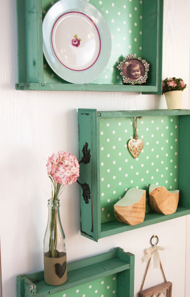 Use stencils, wallpaper, or decoupage to create artistic surfaces on drawers, tables, or cabinets.