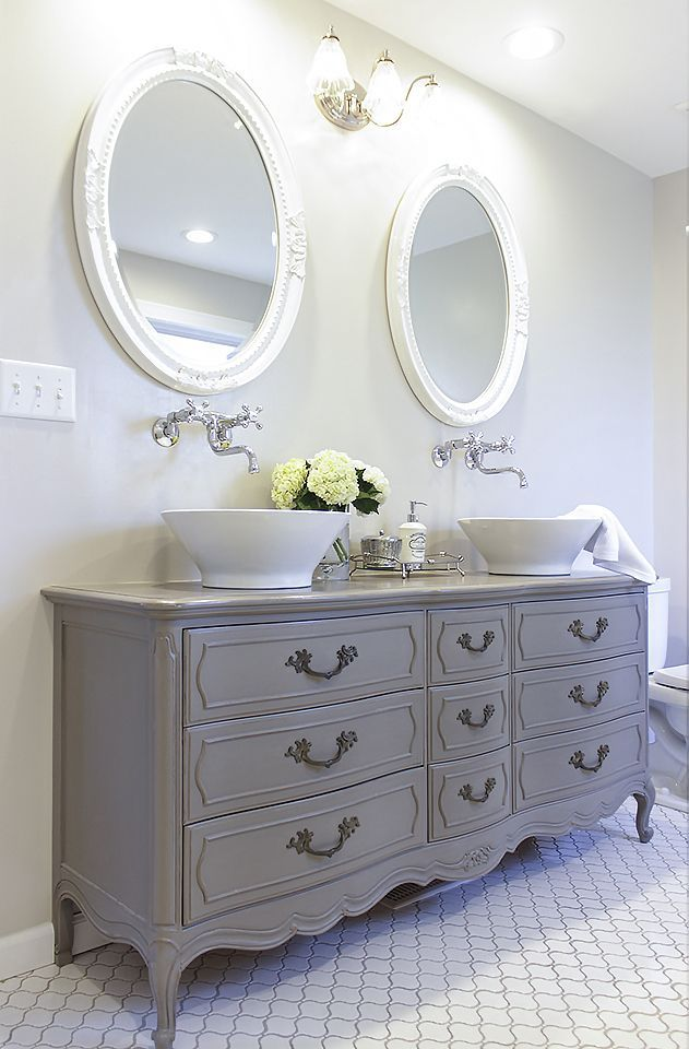 Think outside the box — turn a wooden ladder into a bookshelf, or use an old dresser as a chic bathroom vanity.