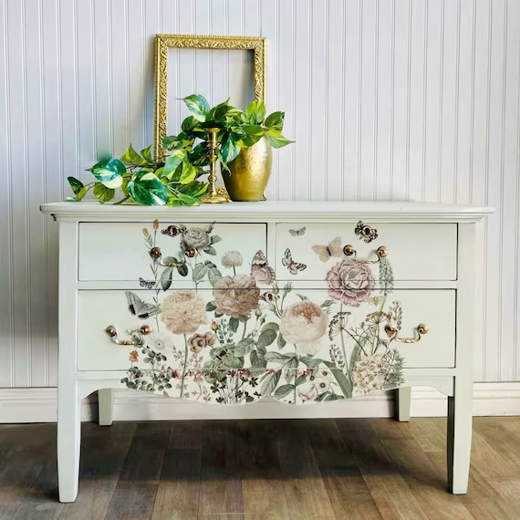 Consider adding stencils, wallpaper, or decoupage to give your furniture character. A floral print on drawer fronts or a geometric stencil on a tabletop can make your piece stand out beautifully.
